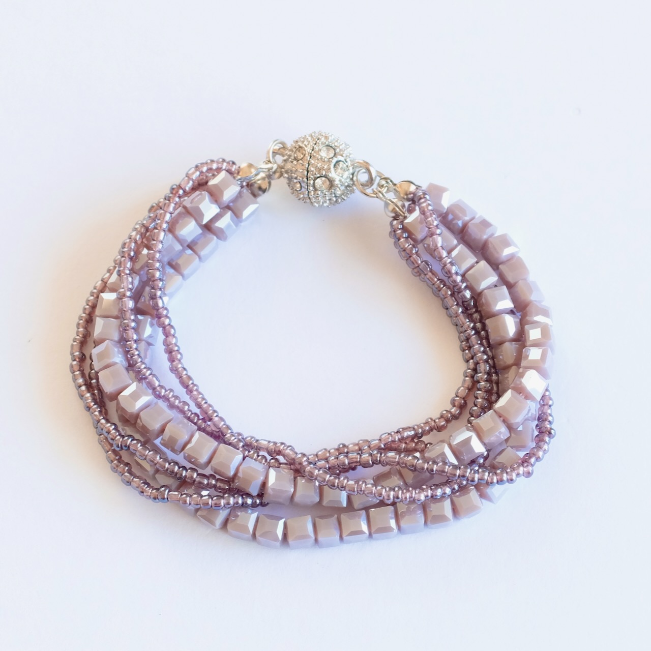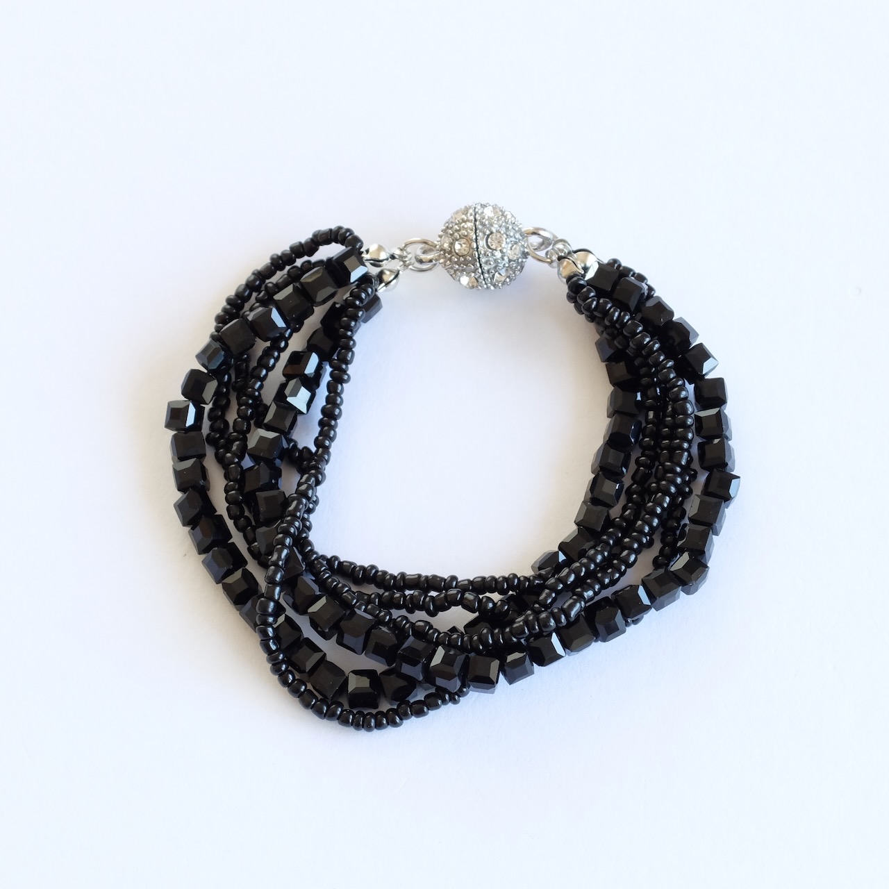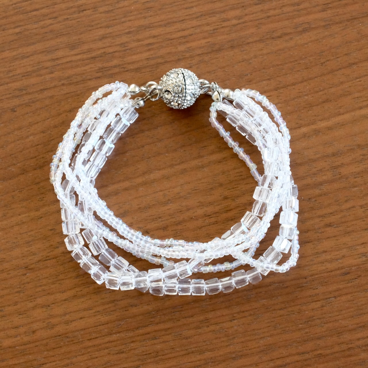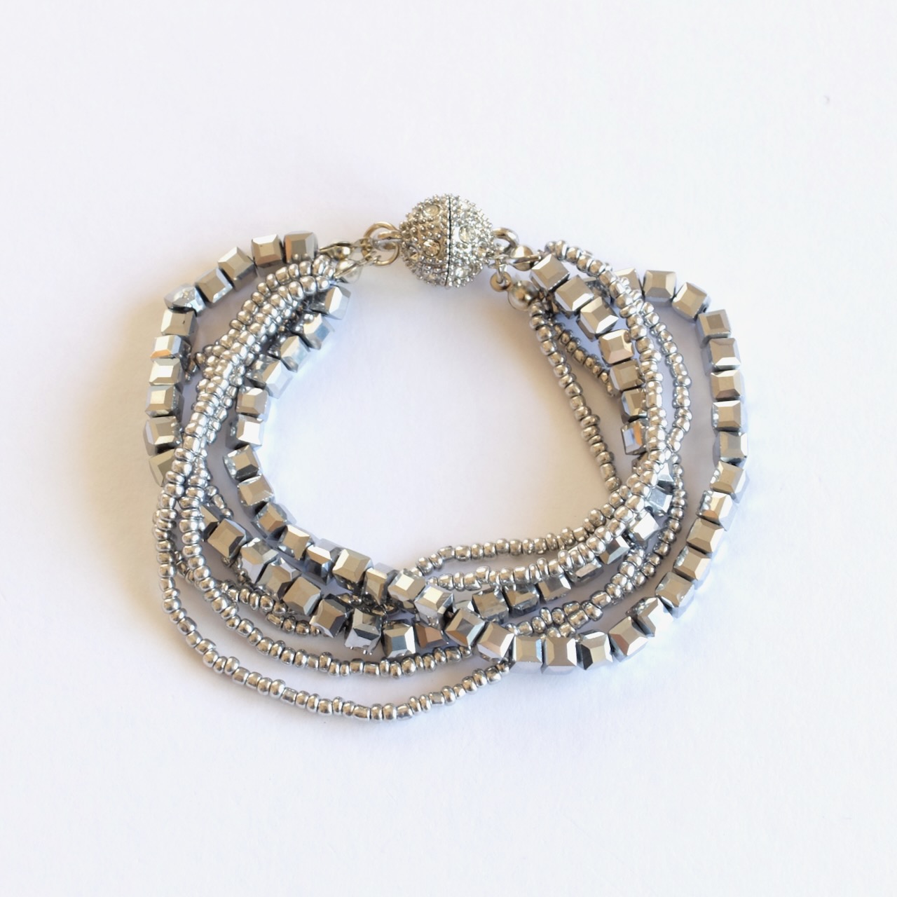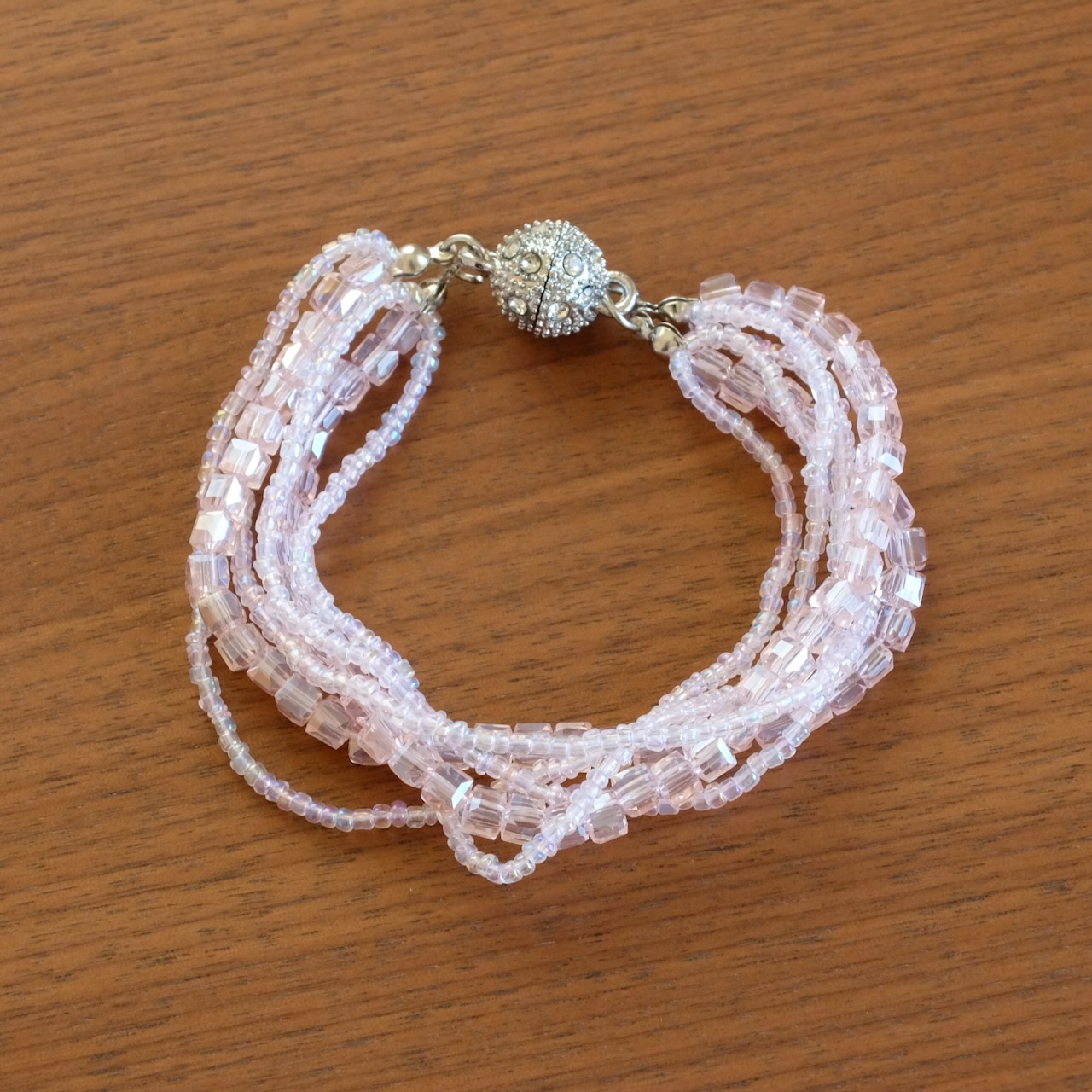 形の違うビーズが重なったブレスレット