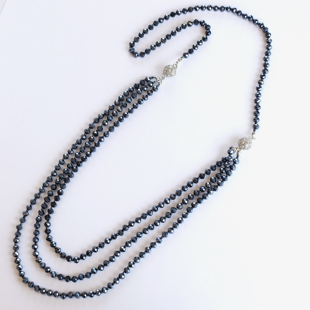 3WAY 多面カットビーズのロングネックレス マグネット留め具