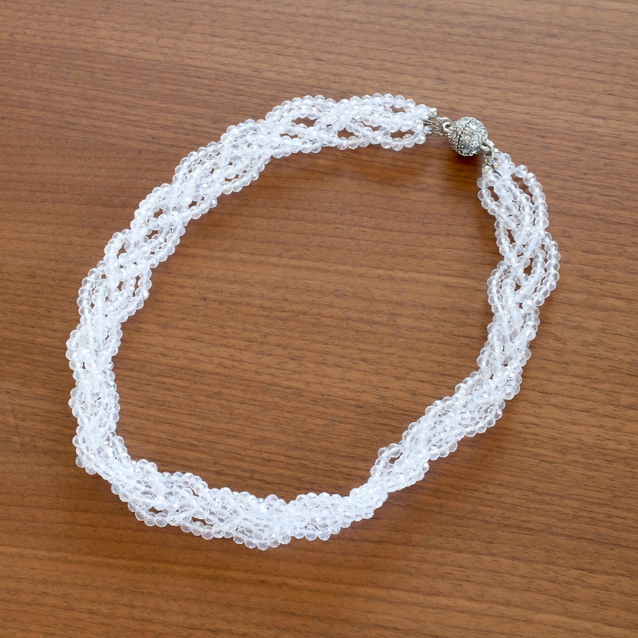2種のビーズ レイヤー ツイスト ショートネックレス