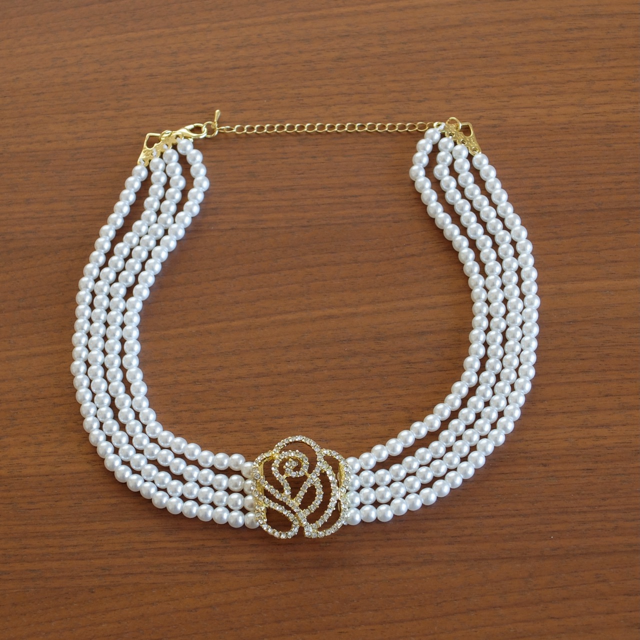 ラインストーンの花のショートネックレス フラワー