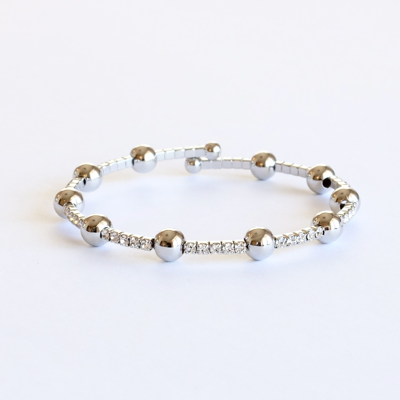 メタルボールとラインストーンのバングル