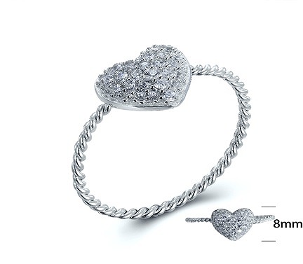 キュービックジルコニアのリング ハートのパヴェ